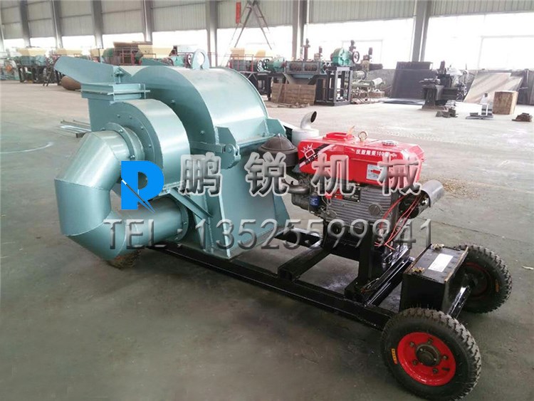 柴油機(jī)帶動(dòng)碎木機(jī)采用刀片切割和高速氣流沖擊,碰撞雙重粉碎功能于一體,并能同時(shí)完成微料分選加工工序。在刀片切割粉碎過程中,轉(zhuǎn)子產(chǎn)生高速氣流,隨刀片切割方向旋轉(zhuǎn),物料在氣流中加速,并反復(fù)沖擊使物料同時(shí)受到雙重粉碎,加速物料的粉碎率。