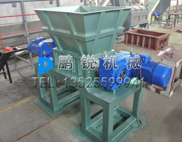 該加工工藝中,將廢舊的編織袋,用機械直接送入新型編織袋撕碎機通過電機→傳動減速機→傳動主軸,由主軸上安裝的N把動刀與機架上安裝的定刀,將整捆的編織袋撕碎,經分離水槽將編織袋與雜物(石塊、等雜物)分離,到達可回收利用之原料。
