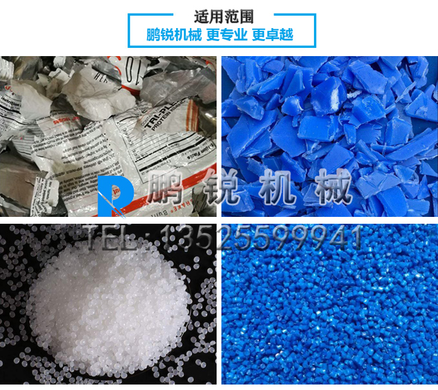 主要用于加工廢舊塑料薄膜(工業(yè)包裝膜、農(nóng)業(yè)地膜、大棚膜、啤酒包、手提袋等)、編織袋、農(nóng)用方便袋、盆、桶、飲料瓶、家具、日常用品等,適用于大部分常見的廢舊塑料,是廢舊塑料再生行業(yè)用途廣,使用廣泛,受用戶歡迎的塑料再生加工機(jī)械。