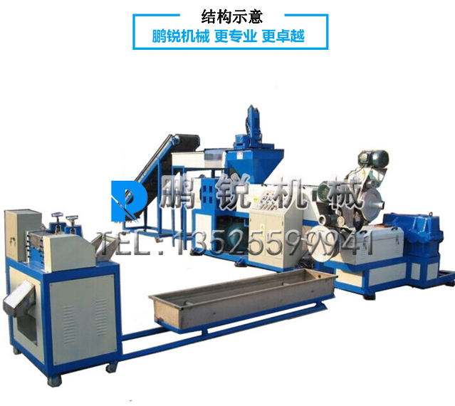 塑料造粒機(jī)設(shè)備的主機(jī)是擠塑機(jī),它由擠壓系統(tǒng)、傳動(dòng)系統(tǒng)和加熱冷卻系統(tǒng)組成。擠塑機(jī)按照機(jī)頭料流方向和螺桿中心線的夾角,將機(jī)頭分成斜角機(jī)頭(夾角120o)和直角機(jī)頭。機(jī)頭的外殼是用螺栓固定在機(jī)身上,機(jī)頭內(nèi)的模具有模芯坐,并用螺帽固定在機(jī)頭進(jìn)線端口,模芯座的前面裝有模芯,模芯及模芯座的中心有孔,用于通過芯線;在機(jī)頭前部裝有均壓環(huán),用于均衡壓力;擠包成型部分由模套座和模套組成,模套的位置可由螺栓通過支撐來(lái)調(diào)節(jié),以調(diào)整模套對(duì)模芯的相對(duì)位置,便于調(diào)節(jié)擠包層厚度的均勻性。機(jī)頭外部裝有加熱裝置和測(cè)溫裝置。主要用于加工廢舊塑料薄膜(工業(yè)包裝膜、農(nóng)業(yè)地膜、大棚膜、啤酒包、手提袋等)、編織袋、農(nóng)用方便袋、盆、桶、飲料瓶、家具、日常用品等,適用于大部分常見的廢舊塑料,是廢舊塑料再生行業(yè)用途廣,使用廣泛,受用戶歡迎的塑料再生加工機(jī)械。